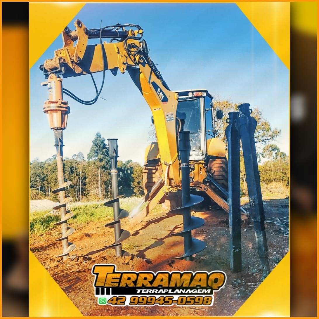 utilizando uma perfuratriz acoplada na retroescavadeira, realizamos diversos trabalhos de perfuração